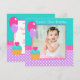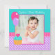 Feiern Sie den Ihren ersten Geburtstag des kleinen Mädchens mit dieser Geburtstags-Fotoeinladung des niedlichen kleinen Kuchens 1. Aufmachung der Ballone und des kleinen Kuchens auf einem Tupfenhintergrund. Gezeigt in rosa, in aquamarinem und in Lila. Um Ihr Foto die Größe neu zu bestimmen und in Position zu bringen, klicken Sie an "BESONDERS ANFERTIGEN ES" Knopf an. Grafiken durch © traumhafte Magie-Entwürfe