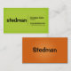 Eine hellgrüne und orange unbedeutende Visitenkarte.