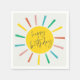 Ein helles Sun Script Kindergeburtstag Party Napkins mit Regenbogensonne und modernen Drehbuch Geburtstag glücklich. Klicken Sie auf die Schaltfläche Bearbeiten, um dieses Design mit Ihren Details anzupassen.