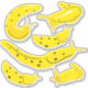 Das konturförmige oder die Aufkleber-Set besteht aus sechs Aufklebern, die wie Bananenstolugs in hellgelber Farbe geformt sind.