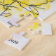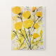 Ein hübsches Puzzle mit handgemalten gelben Blumen mit schwarzen Stielen und lila gemischt.