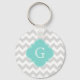 Hellgraues Zickzack Aqua Quatrefolienmonogramm Schlüsselanhänger