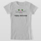 Hier ist ein lustiges Design für jeden Anlass. Es zeichnet sich durch hellgrüne Katzenaugen, eine niedliche rosa Katzennadel und lange Whiskers aus. Der Text "Happy Halloween" kann angepasst werden.