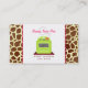 Eine Visitenkarte für den Koch oder Caterer, die auf der Vorderseite einen hellgrünen Retroöfen anzeigt. Hintergrund auf beiden Seiten ist Giraffenprint. Personalisieren Sie den Text vorne und hinten mit Ihren Kontaktinformationen.