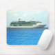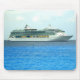 , dort segelnd von ihrem Winter-Zuhausehafen von Tampa, sitzt ein Strahlenklassen-Kreuzfahrtschiff im Türkiswasser des karibischen Meeres, vor der Küste von Georgetown, Grand Cayman. Die eindeutige Farbänderung der Wasserzeichen der Punkt wo die Tiefe der grundlegenden Veränderungen von flachem zu einer viel größeren Tiefe. Farben des Meeres, des Himmels, des Schiffs und der Wolken kombinieren, um eine glänzende Studie in den Blues und im Weiß zu machen.