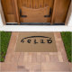 ein Ambigramm des englischen Wortes hallo und das spanische Wort adios für einen Türmchen, der beide Seiten ausliest, ein- und ausliest. ein Zwei-Wege-Türmchen.