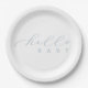 Hello Baby Blue Script Minimalistisch Baby Dusche Pappteller