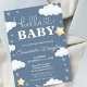 Hello Baby Dusty Blue Clouds Moderne Babydusche Einladung