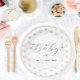 Hallo, Baby! Feiern Sie stilvoll mit diesen individuell anpassbaren Tellern, die ein skurriles Design aufweisen. Feine weiße Blume in Verbindung mit einem farbenfrohen Pop in den Zentren und graue/blaue Farbtöne sorgen für ein frisches, im Frühling inspiriert Aussehen. Diese Teller sind perfekt geeignet für Babyduschen oder jede fröhliche Ansammlung und sorgen für Eleganz und Charme. Personalisieren Sie sie, um Ihre Feier wirklich einzigartig und unvergesslich zu machen! 🌼