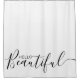 Der Duschvorhang ist mit einem hübschen, schwarzen Text auf weißem Hintergrund geschmückt.