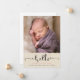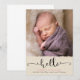 Diese einfache, aber elegante Geburtsankündigung enthält das Wort "hallo" in einer modernen Schrift-Typografie. Der untere Teil der Karte hat einen gerissenen, papierartigen Look, während oben das neue Foto der Bundles angezeigt wird. Personalisieren Sie die Geburtsdetails des Babys. Fotografie © Storytree Studios, Stanford, CA