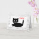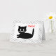 Niedliches Design einer schwarzen Katze mit dem Text Hallo und einem Rahmen aus kleinen schwarzen Polka Punkte auf einem weißen Hintergrund.