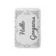 Einzigartige Badmatte mit "Hello Gorgeous" wirlgrauem Muster, handbuchstabiert in Pinselkalligraphie.