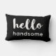 Niedlich Hello Handsome Typografie Kissen Design , ideal für ein lustiges Geschenk. Schwarz auf Weiß