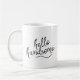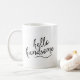 Diese hübsche Kaffeemaschine ist ein perfektes Kompliment für Ihre Tasse. Dieses Design enthält das Zitat "hallo gut aussehend" in einem handgeschriebenen schwarzen Schriftart und ist mit einem schwarzen Swünscht akzentuiert.