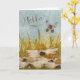 Lass jemandem, dass du über sie nachdenkst mit dieser "Hallo"-Karte, die "chaotische" Aquarellkegel-Blume, einen Schmetterling und eine Farbe plattiert, beklemmend senkrechten Hintergrund von Blätter und Himmel.