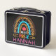 Personalisiert Hello Pre K Bohemisch Arch Rainbow Adorable und dauerhaft, unsere Metal Lunch Box ist perfekt für diejenigen in Liebe mit dem klassischen Stil. Gestalte die Vorder- und Rückseite mit Bildern, Texten und Design für eine fabulöse Mittagspause für deine Kinder oder für dich selbst!