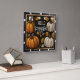 Diese hübsche quadratische Wanduhr besticht durch eine kühne "HELLO Kürbis"-Nachricht auf schwarzem Hintergrund, die durch einen klassischen, karierten Büffel-Rahmen in Schwarz/Weiß hervorgehoben wird. Vier verschiedene Kürbis, zwei Orange und zwei Cremes, verstreut inmitten goldener Herbstblätter, was eine gemütliche und einladende Herbstästhesie schafft.