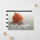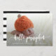 Halloween-Geburtsankündigung mit den Worten "Hallo Kürbis" in einer modernen weißen Kalligraphie, in der das Foto Ihres Babys dahinter angezeigt wird. Weißes Overlay und Text können überall auf der Karte positioniert werden. Die Rückseite der Karte weist ein schwarz-weißes, gestreiftes Muster auf.