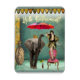 Eine lustige und funky modifizierte Kunstvignette mit Vintagem Flapper auf Stuhl, einem Elefanten mit einem Schirm und "Hello Retirement" im Neontext. Vielleicht ist es genau das, wovon sie geträumt haben..