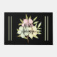 Elegante Tür für den Frühling. Rosa, grüne und gelbe pastellfarbene Blume auf schwarzem Hintergrund. An vorderster Front in einem hübschen Typografie-Skript stehen die Worte "Hallo Frühling".