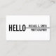 "Hallo" Stilvoll Moderne Minimalistische Black+and+white Visitenkarte mit dem Wort "Hello" und Informationen in schwarzem fett gesangenen Schriftart-Stil auf weißem Hintergrund. Ideal für Designer, Fotografen, Berater und viele andere Berufe.