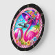Genießen Sie die reizvolle Uhr mit einem niedlichen Flamingo mit einem Hut, einem Strandtag mit Ball und Blume. Die "Hello Summer"-Nachricht bringt eine fröhliche Touch mit sich, die perfekt für jeden Raum geeignet ist, der eine lebendige, tropische Atmosphäre benötigt. Dieses wunderbare Stück bringt die Freude der sommerlichen Zuhause.