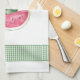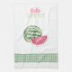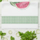 Ein Hallo Sommer! Küchenhandtuch, um die Saison mit einer lebendigen Wassermelone Aquarell-Illustration zu begrüßen, die die Bühne des Zentrums beherbergt, begleitet von einer stilvollen grünen Gingham-Grenze für eine Touch klassischer Eleganz.