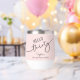 This 30th birthday wine tumbler showcases modern script typography reading “Hello Thirty,” complemented by a soft pink background. It's simple yet stylish design makes it a perfect birthday gift for a wine lover.