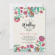 Bohemian Boho schicke Hochzeitseinladung mit einer orangefarbenen Mandarine mexikanische Folk Blume Muster
