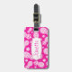Helles rosa Gepäck mit dem Namen ID-Tag, um Ihnen zu helfen, Ihren Fall zu finden. Personalisieren Sie mit Ihrem Vornamen auf der Vorderseite und der vollständigen Adresse auf der Rückseite. Hübsche Ananas und daisy Typ Blume wiederholen Muster-Design. Ideal für tropische Ferien. Einzigartig gestaltet von der Designerin Sarah Trett.