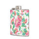 Elegante, helle, gürtelrosa Blume und grüne Blätter sind nahtlos. Weißer Hintergrund veränderbar.