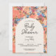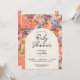 Lebhafte, farbenfrohe Babydusche mit abstrakten Blume in lila, rosa, blauen und weißen Farbtönen auf einem angesagten pfirsichfarbenen Hintergrund. Ideal für Sommer-, Frühlings- und Mädchenduschen. Passen Sie den Text und den Schriftart, die Skalierung des Musters und die Farbe des Bogens an, der sich unter dem Text befindet. Eine tolle Möglichkeit für Blumen-, Boho- und weibliche Babyduschen.