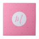 Keramik-Dekorfliese zeigt einen fraktalen Hintergrund aus hellrosa gewellten Quadraten. Die rosa Initiale befindet sich innerhalb eines weißen Kreises aus gewellten Quadraten. Schönes Muttertags- oder Geburtstagsgeschenk für Mama.