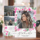 Moderne chic hell rosa und grün florale Aquarell Graduate Skript Open House Foto Abschluss. Fügen Sie 4 Ihrer Lieblings-Fotos mit einer eleganten Skript-Kalligraphie und Foto-Grid-Collage hinzu.
