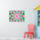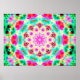 Eine helle rosa und grüne Mandala Kunst mit vielen repetitiven Formen und einem sehr detaillierten Muster.