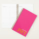 Orange Buchstaben für Ihr Monogramm erscheinen auf einem hellrosa Hintergrund. Beige Texte stehen für eine benutzerdefinierte Nachricht zur Verfügung (Bild: 2026 Planer) Alle Texte können bearbeitet oder gelöscht werden.