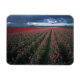 Hellrosa und rote Tulpen leuchten unter dunkler Fa Magnet