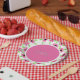 Hellrosa und weiß pappteller