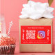 Ein einprägsamer, hellroter Hintergrund. Personalisieren Sie Ihren Firmennamen, Ihren eigenen qr-Code und fügen Sie ihn Ihrem Instagram-Konto hinzu. Weißer Text. Mit dem Text x2: Folgen Sie uns!