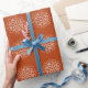 Dieses weiße Mandala liegt auf einem henna-orangen Hintergrund. Die Farbe ist dunkel und natürlich. Teil der Briallenn Mandala Kollektion.