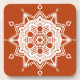 Dieses weiße Mandala liegt auf einem henna-orangen Hintergrund. Die Farbe ist dunkel und natürlich. Teil der Sammlung Fenten Mandala.
