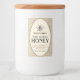 Personnalisez votre étiquette miel avec votre nom, adresse, nom d'entreprise, poids net miel, descripteurs et coordonnées. Vintage abeille héraldique avec bordure ovale sur un arrière - plan tourbillon vintage or. Idéal pour les bouteilles plus grandes.