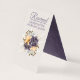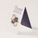 Hübsche Stand-up reservierte Tisch Hochzelt-Karte in einem strukturierten Elfenbein und lila und gelbe Blumen gemacht. Der lila Text ist bereit zu personalisieren, um zu lesen, was Sie gewollt haben. Die Innenseite der Karte wird in einem hübschen, lila Damast durchgeführt, der die Koordination übernimmt.