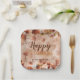 Personalisiertes Erntedank Papier Platte-Design mit dem Text "Happy Thanksgiving" geschrieben in einem extravaganten Skript mit Ligaturen und Ihrem Familiennamen auf einem Hintergrund aus Herbst fallen Blätter in Brauntönen komponiert. Der Text ist vollständig anpassbar. Um es zu ändern, verwenden Sie die Option Personalize. Weitere Änderungen, z. B. Änderungen am Schriftart, am Schriftart oder am Textlayout, können Sie mit der Option Design bearbeiten durchführen.