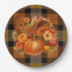 Das karierte Design in den Herbstfarben mit rustikalem Cornucopia, gemütlichem Kürbis und saisonalen Blumen lädt zum Verweilen ein. Ideal für Erntedank, Party und Ernteveranstaltungen.