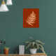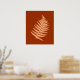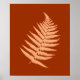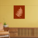 Eine Silhouette, die aus einem Farnblatt zeichne, fällt in hellbrauner Farbe mit dunkelrötlich braunem Hintergrund.