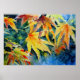 Die schönste Naturshow der Welt, Herbstfarben aus Gold und Orange verbinden sich mit Blau zu einem atemberaubenden Bild. Herbstliche Blätter von Ackerbäumen vor einem reichen Hintergrund von blau und grün.