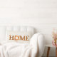 Dieses Kopfkissen wird in einem dezenten Weiß mit einem Herbst-Herbstlaub-Druckdesign mit Zuhause-Text gezeigt. Passen Sie dieses Kissen an oder kaufen Sie, wie es ist.