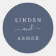 Diese Umschlag Aufkleber der Herbstmarinade sind perfekt für eine Hochzeit im Herbst. Das moderne rustikale Design mit den Namen der Braut und des Bräutigams in Weiß auf marineblau-blauem Hintergrund